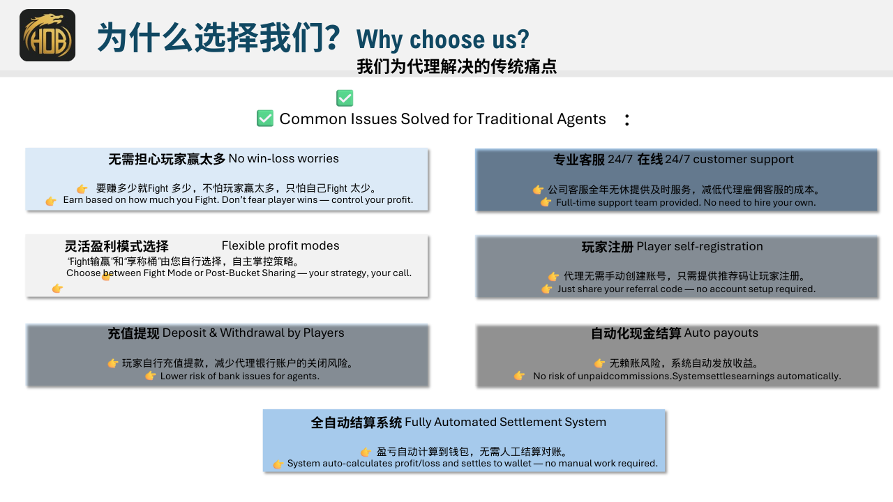 Earn dual benefits from all downstream players, including betting volume and win/loss through Pre-Fight and Post-Bucket profit sharing.